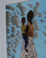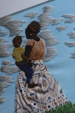 Mixed media textile Art. The blue sky is painted using water colours. The rest is hand stitched with DMC thread. It has a few beads on it. The frame measures 11/14. The embroidered surface is 8/10.